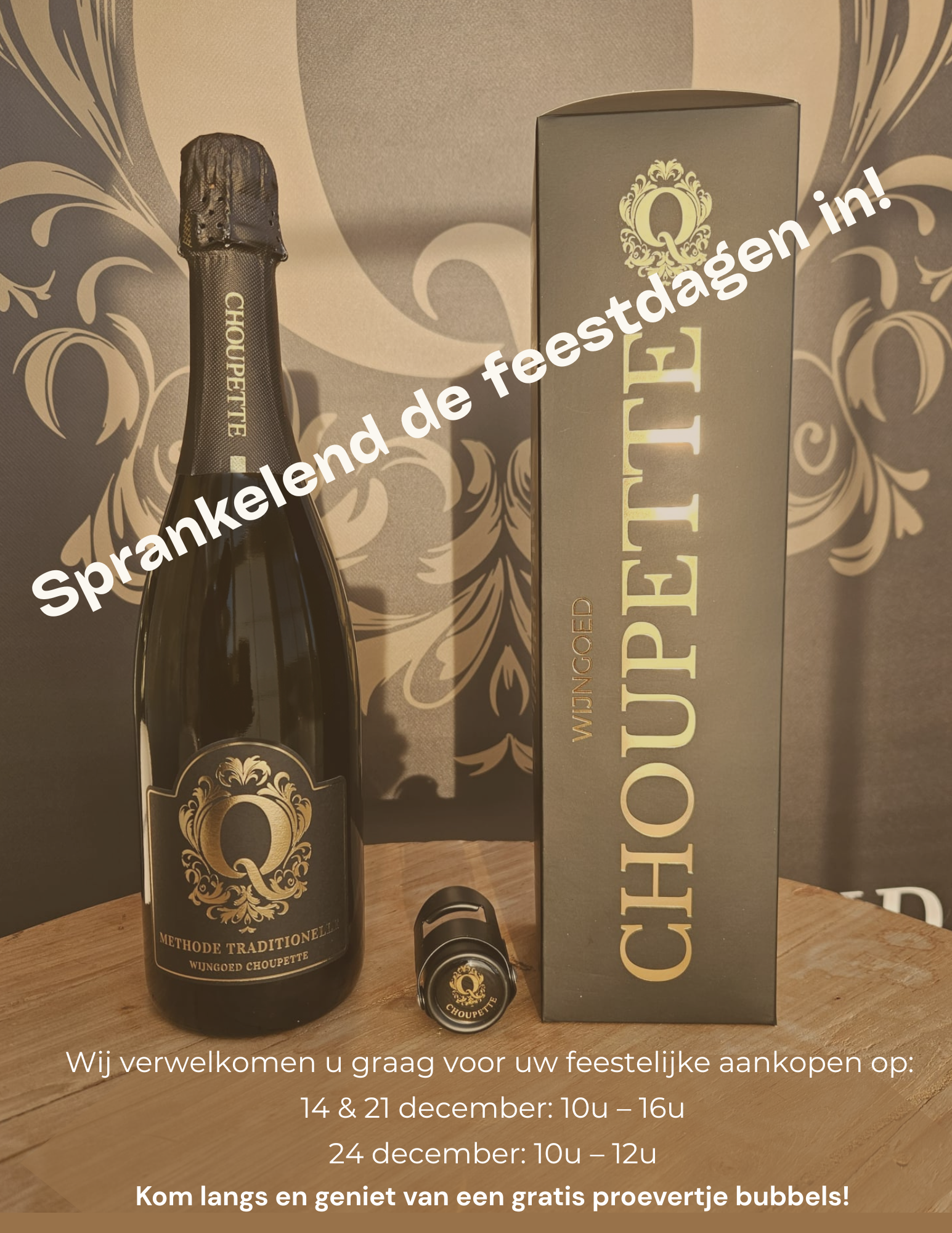 Welkom op de website van Wijngoed Choupette, een charmante lokale wijngaard en wijnmakerij in het pittoreske Westrozebeke, West-Vlaanderen. Hier delen Mieke en Quincy hun passie voor wijn en hun diepe respect voor de natuur, wat tot uiting komt in hun ambachtelijke, kwaliteitsvolle wijnen. Het volledige proces van druif tot wijn of mousserende wijn in de fles vindt plaats op het wijngoed zelf. De wijnen zijn exclusief verkrijgbaar op het domein, in een buurtwinkel en via de webshop.
