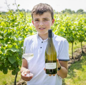 Aaron is de zoon van Mieke en Quincy. Tijdens een wijnbeurs zag hij kleine vaatjes en vroeg hij of hij zo een vaatje mocht hebben om zijn eigen wijn te kunnen maken. Zo is het allemaal begonnen. In 2024 maakte Aaron zijn eigen wijn La Promesse die sinds de zomer van 2025 te koop is. Benieuwd naar zijn wijn? Ontdek of La Promesse nog beschikbaar is in onze webshop.