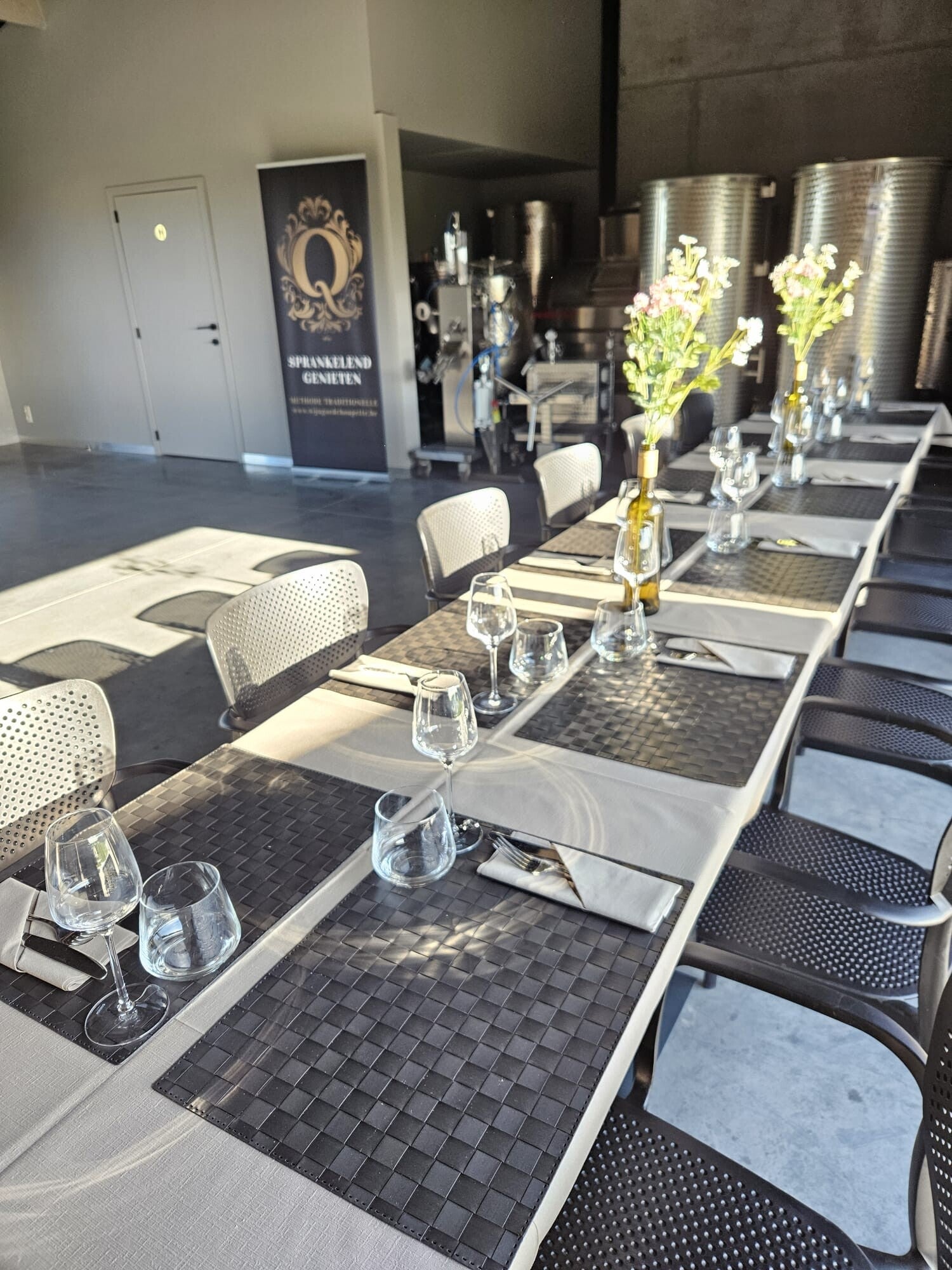 Beleef een sfeervolle proeverij vanuit de wijnmakerij met prachtig uitzicht op de wijnranken. Tijdens de degustatie proef je een verfijnde mousserende wijn, twee witte wijnen en eindig je met een fruitwijn.