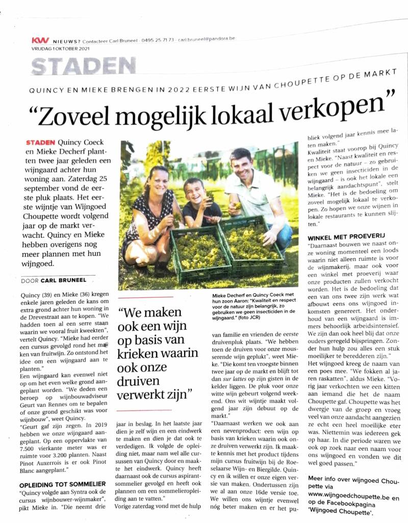 Artikel verschenen in de Krant van West-Vlaanderen (1/10/2021)