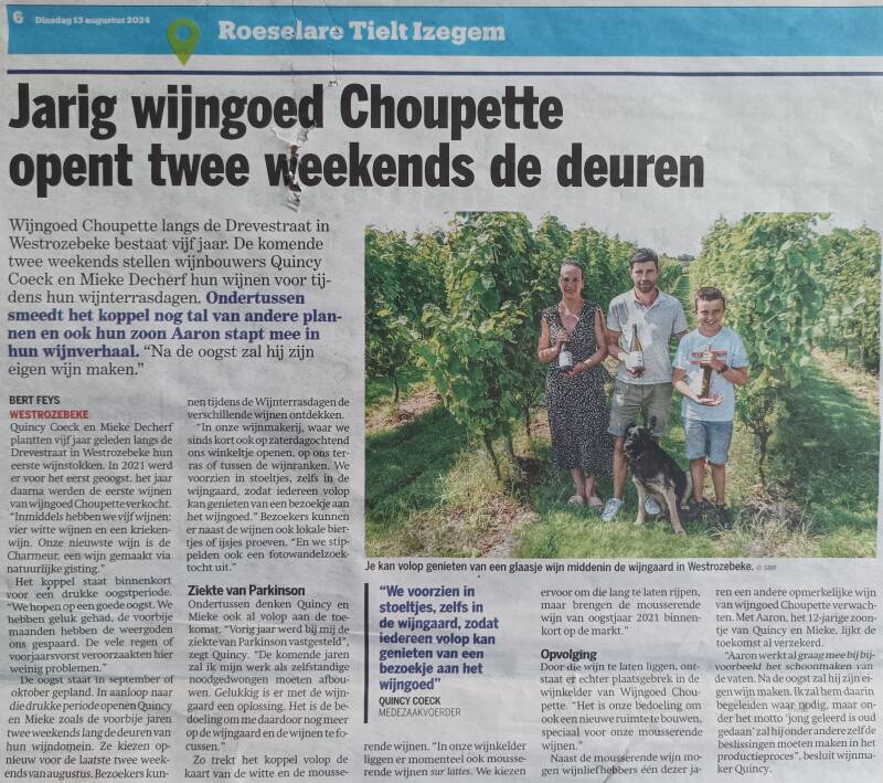 Artikel verschenen in de krant van West-Vlaanderen (12/08/2022)